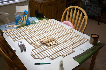 I saw a neat idea on YouTube where a kid made a mansion out of popsicle sticks. I thought it would be a fun project idea, so I decided to try my hand at it. I spent a lot of time on it for a few weeks, and I documented my progress as I went along. Now it just sits neglected in its unfinished state. I may never finish it now, but it was helpful project at the time.